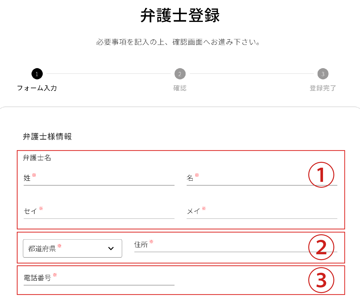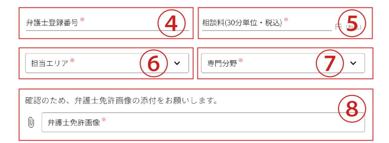 ④弁護士登録番号を入力ください。