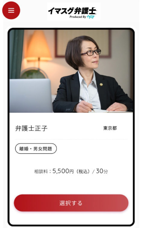 ⑤相談料(30分単位・税込み)実際に本サービスで相談者とマッチングした際にお客様側に表示される料金となります。