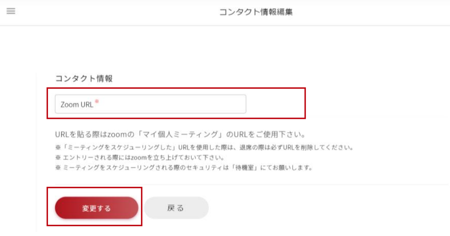 ②ZOOMURLの貼付ZOOM URLはご自身のZOOMより「マイ個人ミーティング」のURLを確認の上、貼り付けをお願いします。