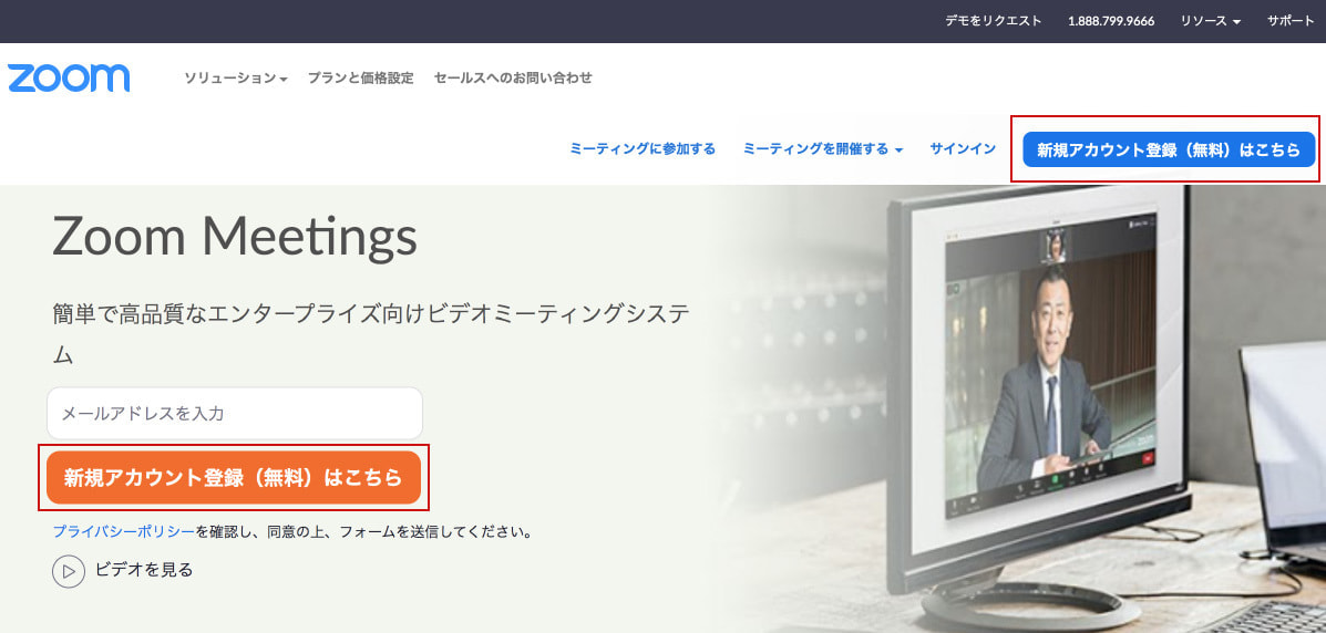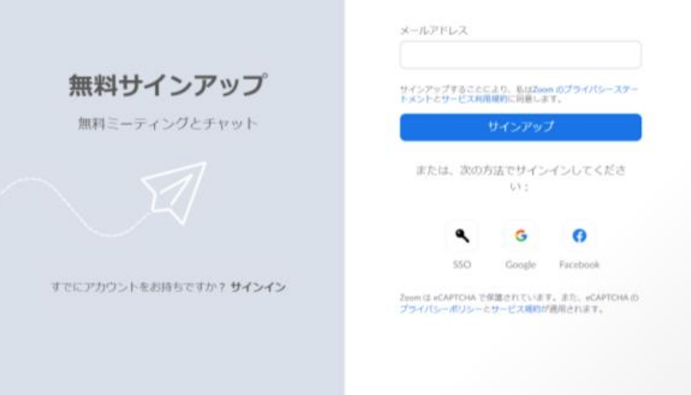 ①ZOOMのアカウントをお持ちでない方はサインアップを行ってください。