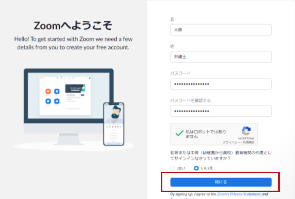 既にZOOMへ登録済み(アクティベート済み)の方はSTEP3の「サインインしてパーソナルミーティングのURLを確認」を参照してください。
