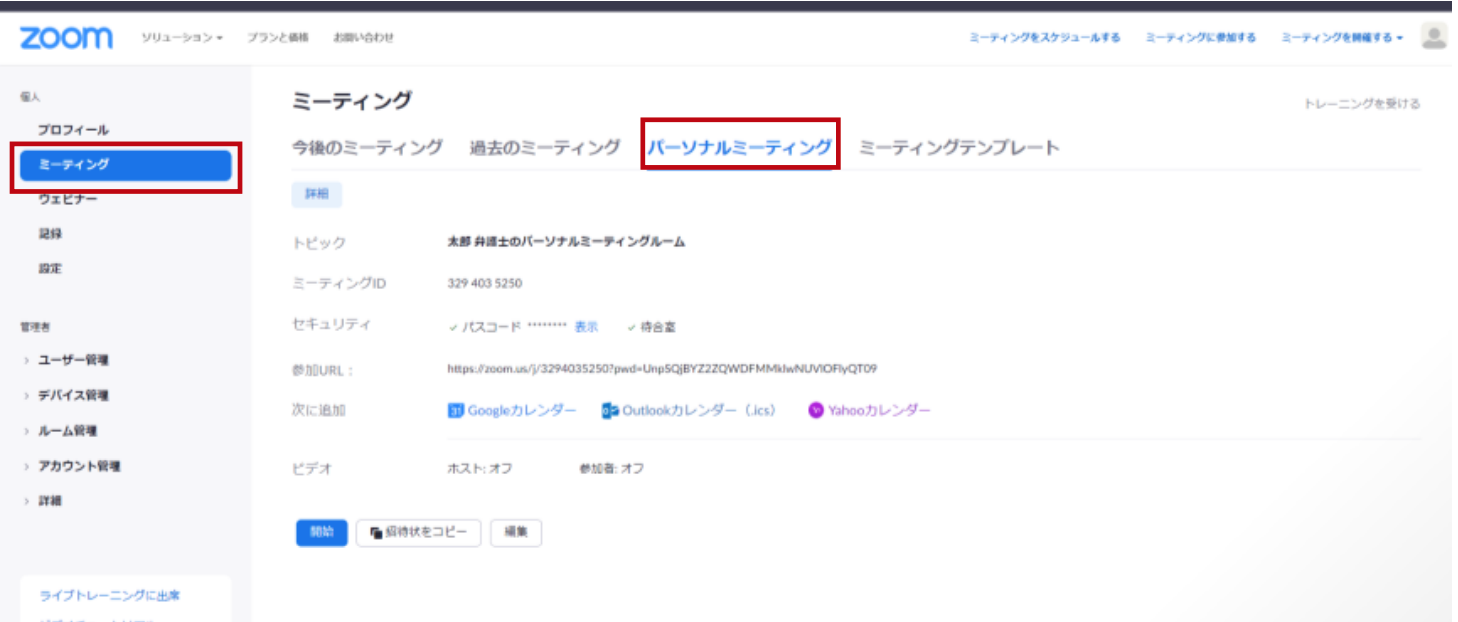 STEP3:サインインしてパーソナルミーティングのURLを確認