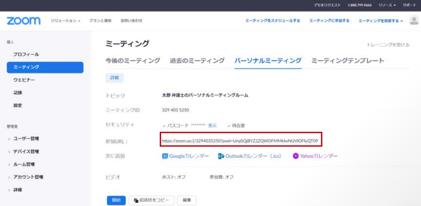 「イマスグ弁護士」で相談者とZOOM相談を行うためには、ZOOMへのサインインが必要となります。ZOOMへサインインの上、発行される「マイ個人ミーティング」のURLを使用し、相談者とZOOMを通じてオンライン相談を行えます。